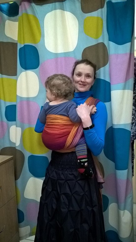 Я однозначно не стала бы мотать в нее младенца. Этот шарф хорош для малышей месяцев с 3 и до того, как карапуз наберет килограмм 8-9