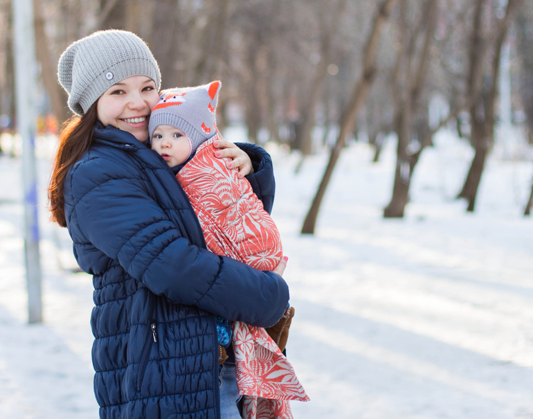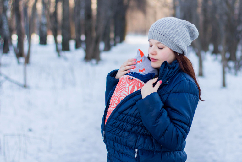 Итак, главное свойство «Уралтау» - он очень цепкий. Прям капец какой цепкий. Настолько цепкий, что регулировать намотку крайне сложно, если не сказать нереально. Наматываться нужно тщательно и с первого раза, иначе с примотанным ребенком исправить огрехи будет проблематично. Возможно, после более интенсивного разнашивания шарф станет послушнее. Но справедливости ради хочу отметить, что благодаря цепкости шарфа намотка никуда не уползает и держится на одном узле.
