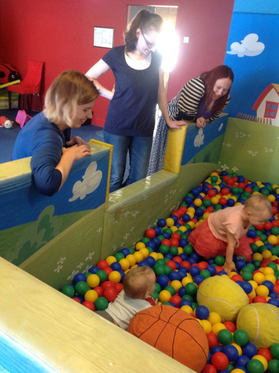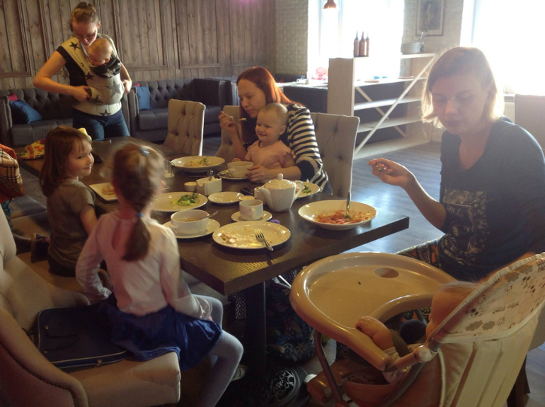 Кроме нас там за три часа были еще одни посетители с ребенком, т.е. днем там пусто, места много, есть диванчики и детские стульчики, можно с легкостью и комфортом покормить ребенка и уложить его спать (хоть в игровой комнате, хоть в слинге))
