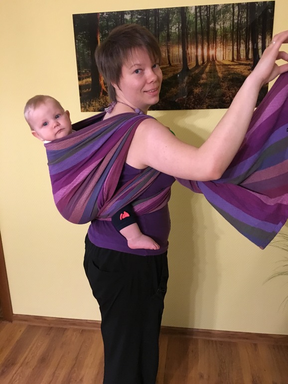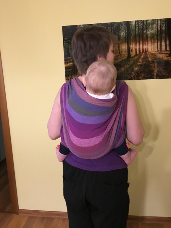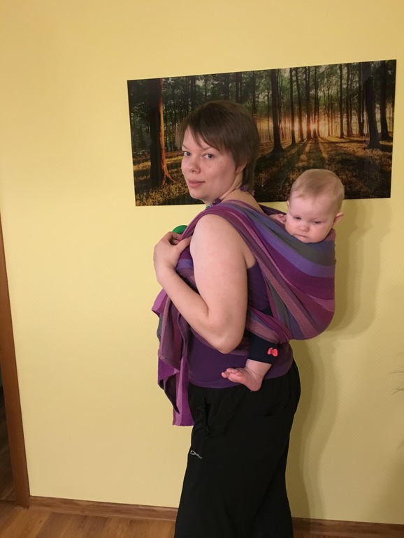 Из-за такого сложного подтягивания в рюкзаке у меня не получилось хорошо дочку притянуть по верхнему борту, это видно на фото. Но, это как раз связано с тем, что за спину я мотаю недавно, маленький опыт.