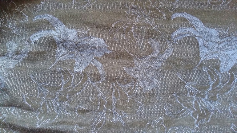 Первый день шарф лежал просто на виду, так как времени замотать ребенка не было совсем. Но чем дольше шарфик лежал, а я на него смотрела, тем больше и больше он мне начинал нравится:) Как-будто лилии начинали распускатья и показывать свою истинную королевскую суть.