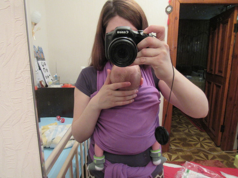 И можно попробовать чуть по ниже малыша мотать, иначе грудь давать не удобно