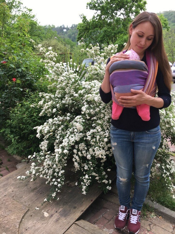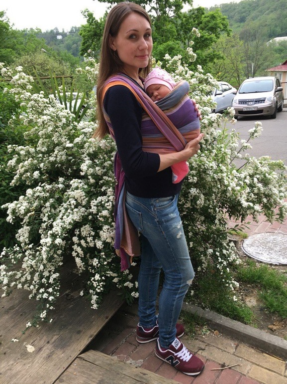 Изначально был небольшой страх, что освоить намотку будет крайне сложно, ведь тут есть свои тонкости и нюансы! Но!!! Грамотный консультант и регулярные пробы делают своё дело. Слинг очень послушно регулировался без особых усилий и мягко, но плотно обнимал дочку. Оценила я и полосатую расцветку. Когда на прогулке малышка засыпала, я быстро ориентировалась какую часть подтянуть именно благодаря полосам, поэтому всем, кто только начинает осваивать шарф или задумывается о покупке, очень советую именно вариант полосатого слинга.