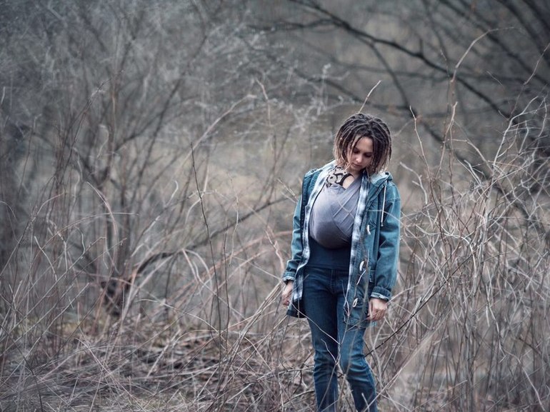 Это мой безусловный фаворит, это самое нежное и прекрасное для младенчика. Он тоньше шейного платка (просто посмотрите на фото внизу, сквозь три слоя отлично видно резиночку малышовых штанишек). Он скользкий, но не гладкий и холодный, а пушистый и воздушный. Я люблю эти сложные цвета: пыльно-розовый и серебристый серый. Вот💜