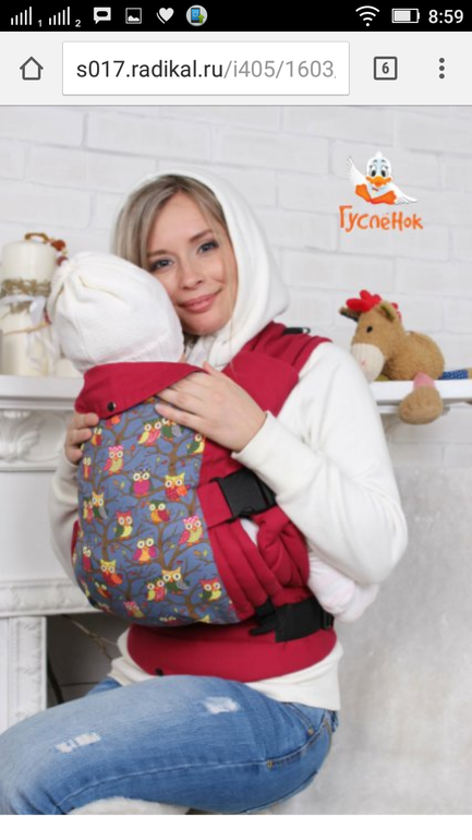 на данный момент ребенку 2 месяца. Мы миниатюрные 4400 и 56 см. Увидела в интернете вот такой эрго Гусленок комфорт.