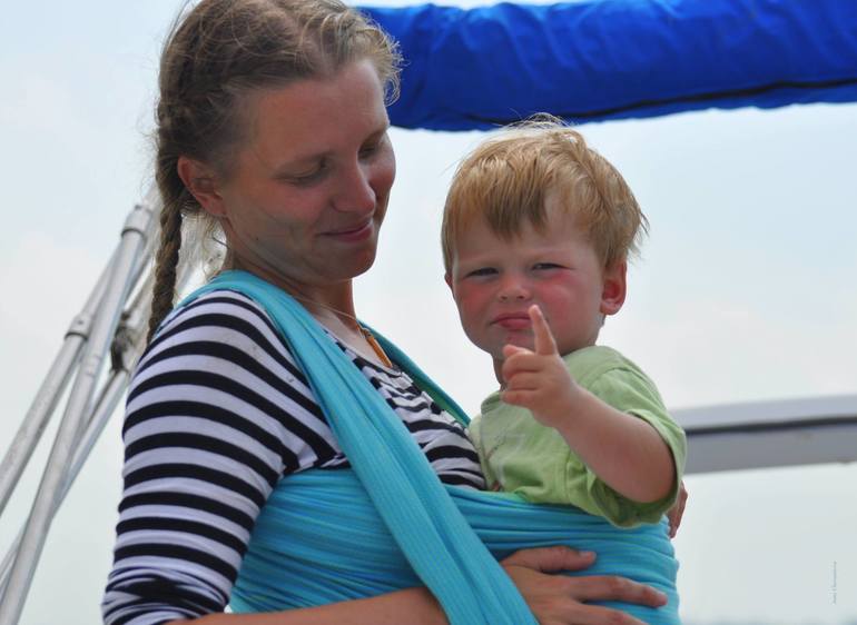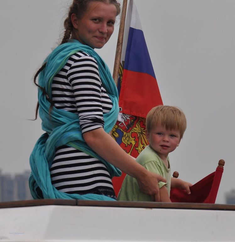 На фото: слингомама в сшитом платье из тельняшки тм Вместе и канги, слинг олдхопп проакапулько (кстати тоже полосатый))) и слингосын в салатовой футболке. Фотографии делались на моторной яхте и в яхт-клубе))