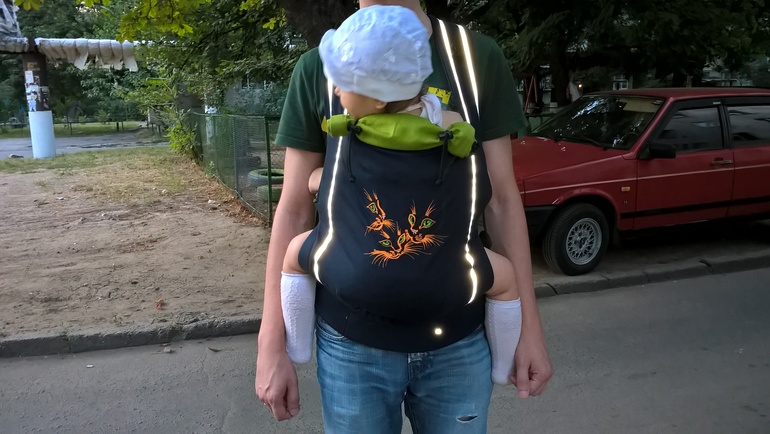 Слинг-рюкзакТак получилось, что свою среднюю я носила в чем-то походем на кенгу со съемной спинкой. Младшую пару раз тоже там. Но потом пожалела свою спину и вспомнила про замечательного мастера по эргорюкзакам. И заказала для младшей эрго.