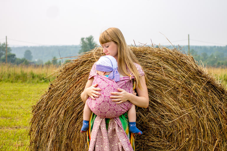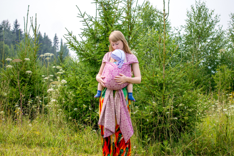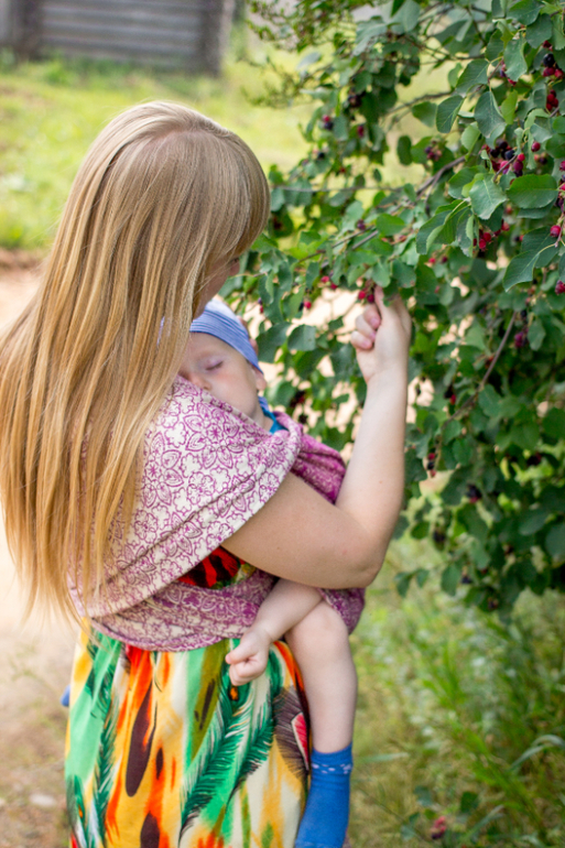 На мой взгляд шарфу не достает пластичности. Немного. Но так, что у новичков вполне могут быть проблемы с покорением верхних бортов в намотке, которые нужно с некоторым упрямством подтягивать и перегонять, сами они не лягут как надо. Впрочем, при некотором опыте это незначительный минус. Что касается так называемой грузовозности, После года-полутора становится "сиренево" в чем носить. Намотки к тому времени уже давно аккуратны, все удобные/неудобные "фичи" в слингоношении мамой уже изучены, да и любимые 11 килограмм чаще стремительно улепетывают от шарфа, чем горят желанием ездить в нем часами) Скажу так, Блум Аделаида носила моего спящего Ваню около часа. И пронесла бы дольше, но по жаре гулять было в прямом смысле "не айс" и ребенок был переложен дома в кровать досыпать.