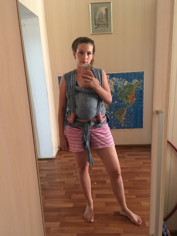 Первый раз причалила его в слинг неделю или чуть больше назад, но ему не сильно понравилось, начал барахтаться и пищать, а оказывается надо было просто опустить чуть ниже намотку и помочь схватить сисю, и меньше чем за минуту деть уснул)