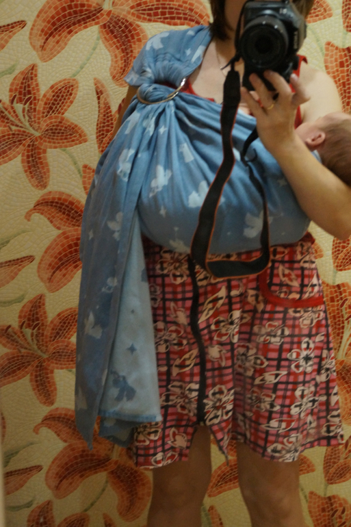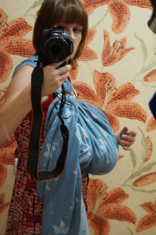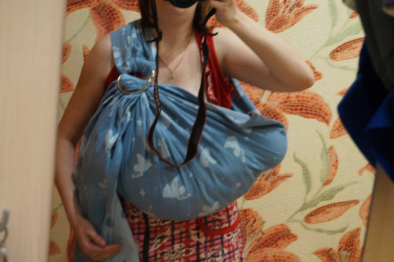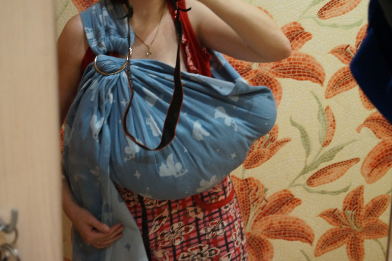 Хорошо, что вы так все сфотографировали! Вы очень много ткани оставляете под карман и очень много натягиваете на голову. К сожалению, все неправильно в положении ребенка и ррегулировке ткани. Юля, я не знаю, с какими инструкциями вы уже знакомы, но если вы сделаете все как тут, то результат должен быть иным: http://slingoliga.ru/instructions/instr01/ http://slingoliga.ru/instructions/instr02/ И погуглите мастер-класс Юлии Фадеевой по сск.