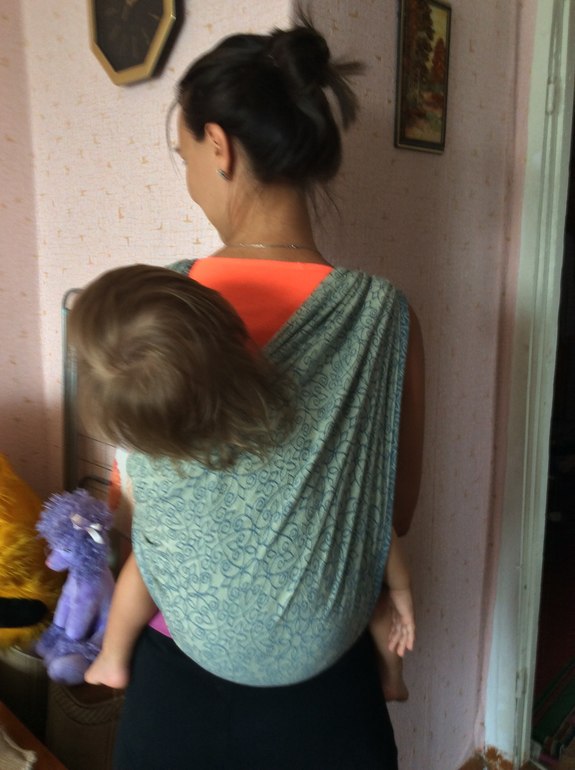 подходит для подросших деток, потому что не плохо держит намотку, довольно таки цепкий - можно носить как за спиной, так и в классическом КНК ;