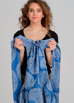 МАТЕРИАЛ, из которого выполнены май-слинги, - ШАРФОВАЯ ТКАНЬ. От обычной она отличается пластичностью (прочные не тонкие нити расположены достаточно свободно относительно друг друга), что позволяет слингу максимально комфортноподдержать и ребенка, и спину родителя, без лишних складок и «пузырей». Именно это свойство шарфовой ткани обеспечивает слингам длительное использование с любым весом ребенка - от рождения до 2-3 лет.