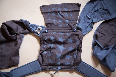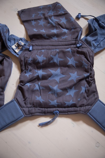 Классно, что плечевая лямка (ее ширина около 15-20 см.) вшита обратной стороной, поэтому если расправить полотнища плечевых лямок по спинке ребенка, то весь май-слинг в целом выглядит очень эффектно.