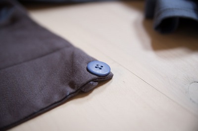 Вот как раз та пуговка на плечевой лямке, которая будет вдета в петельку. Обратите внимание, что пуговица двигается и может быть ближе или дальше в зависимости от размеров ребенка или того, насколько далеко место крепления пуговицы от головы ребенка.