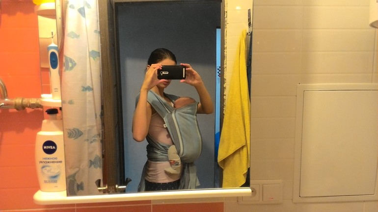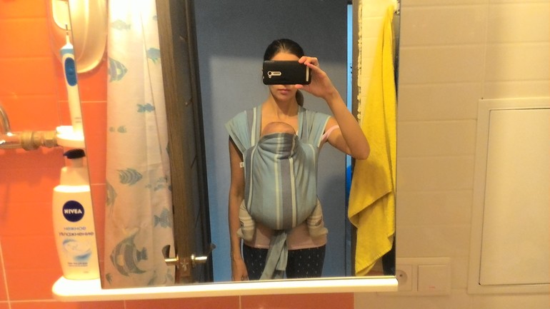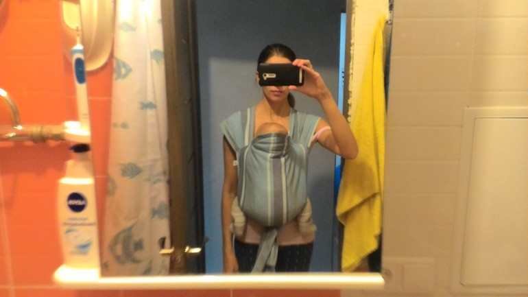 мне нравится, а как детка, выражает беспокойство? Возможно спинка высоковата ...а почему не хотите слинг-шарф попробовать? то же самое в намотке, плюс шарф подстроится конкретно под размеры именно вашего малыша)