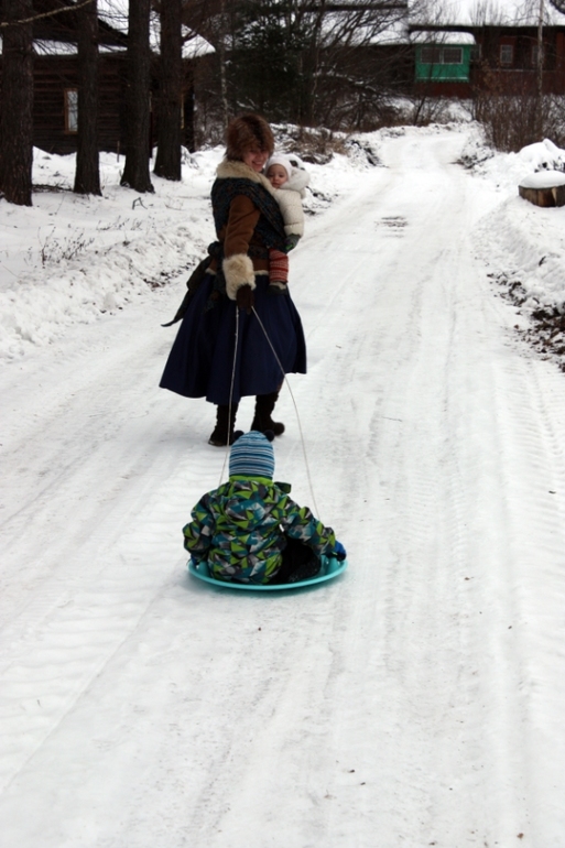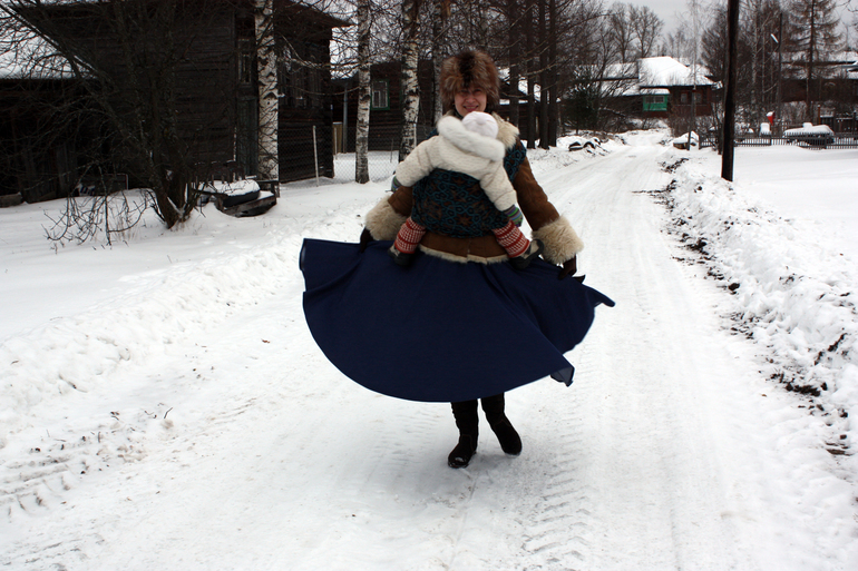 Первую зиму дочка была совсем крошка и слинг мотали под слингокуртку. Сейчас дочка бегунок, поэтому только поверх.
