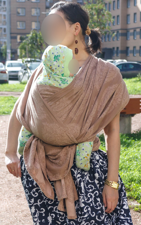 А вот моя дива, тоже всем довольна, разве что мы с малышом жаркие и нам было очень душно в этом шарфе. Но на прохладную погоду вообще самое оно плюс именно этот цвет, на мой вкус, шикарный))) темный беж с еле уловимым розовым оттенком))