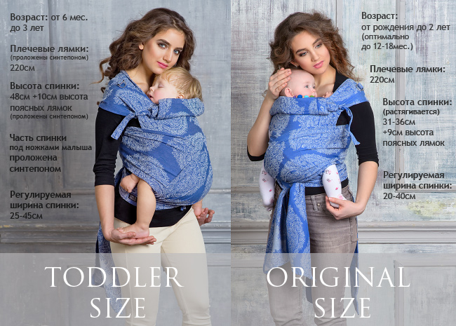 Все это позволяет удобно размещать в май-слинге подросшего ребенка и с комфортом носить тяжелого малыша!