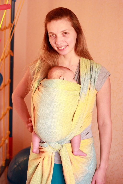 Состав: хлопок, алмазное плетение, градация. Слинг-шарф из категории бюджетных, по плотности ближе для ношения младенцев, да и по моим ощущениям тоже. Сейчас дочь весит 6 кг и в слинге очень комфортно, с бОльшим весом можно сделать намотку трехслойной. Первый раз мотали Симбио примерно при весе 4,5 кг. Мои ощущения от шарфа самые приятные с младенцем, считаю что он отлично подойдет новорожденному и на первые полгода-год жизни пока будет комфортно маме, а также не очень тяжелому ребенку на лето. За спину Симбио мотать легко и удобно.