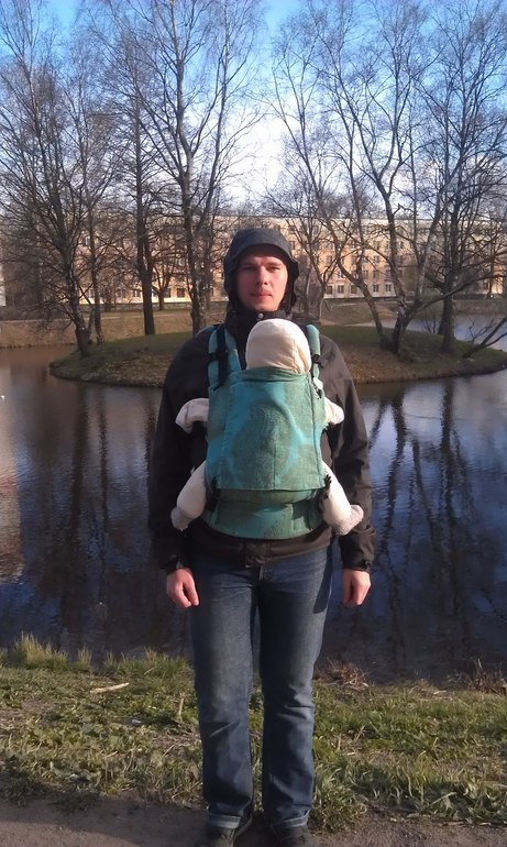 Отдельно хочется сказать про ношение за спиной. Я надевала 8 образом впервые, слинг-шарф не решалась. С рюкзаком оказалось немного проще. Очень приятно чувствовать, как тебя обнимает родной комочек сзади:))