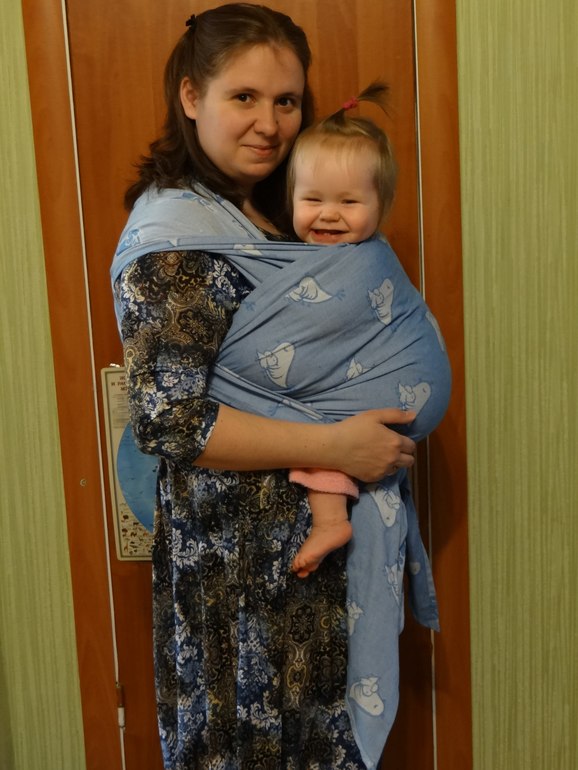 АксессуарыЭто наш первый тест-драйв и первая проба пера. Прошу, не судите строго. Было интересно поучаствовать в тест драйве слингов, который проводил магазин «Мамы Большого Города». www.demetrashop.ru Птички приехали ко мне с курьером, и мы сразу же намотались в кнк, потом в двойное ребозо спереди и двойное ребозо и немного пофотографировались. Цвет и паттерн приятный, трогательные птички - малыш под крылышком мамы. Шарф подшит на обе стороны, можно светлой стороной носить, можно темной. Темная, условно, сторона - это очень приятный насыщенный голубой цвет, светлый - серо - голубоватый. Дома в намотке мне он понравился, намотался и подтянулся легко, кстати, именно в нем я впервые попробовала новую намотку - двойное ребозо спереди. Нестиранный шарф жестковат, требует разнашивания. Но намотка не ползет. А вот походу на улицу в птичках моя спина не обрадовалась. Птички всё-таки для пассажиров полегче. Наши 11 кг тяжело нести в них, шарф врезается в плечи. После стирки и глажки шарфик стал несколько мягче. Думаю, что это хороший хлопковый шарф, рабочая лошадка для малыша месяцев с двух и кг. до 8ми. Магазин «Мамы Большого Города» просил указать промо-код TRY-15, с которым любой слинг Mum's Era можно приобрести со скидкой 15%.