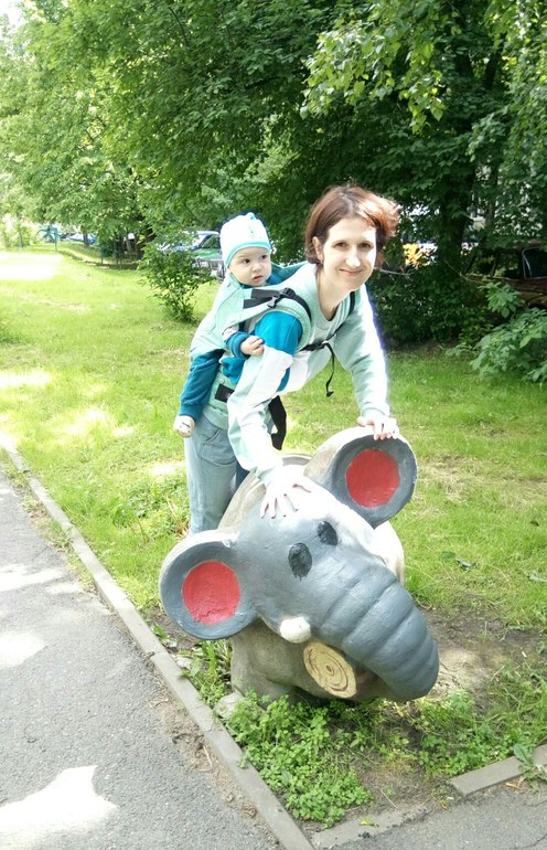 А так как я люблю все сравнивать, то и замеры сделала. Итак, максимальная высота спинки без пояса рюкзака (если мерить по самому длинному месту мягким метром) - 43 см. Максимальная ширина по м-позиции 44 см. Оказалось, что Diva больше стандартного «Карауша» и даже рюкзака «Aloe» размера «Малыш» (глубину не учитывала). Сравниваю именно с этими марками, так как на момент тест-драйва они у меня жили дома. В общем, во время носки, нам приходилось немного подгибать спинку сверху, ну а если ребенок пытался вытащить руки (в 10 месяцев вполне себе нормальное желание), то рюкзак собирался гармошечкой. По моим ощущениям эта модель все же на тоддлера или упитанного малыша.