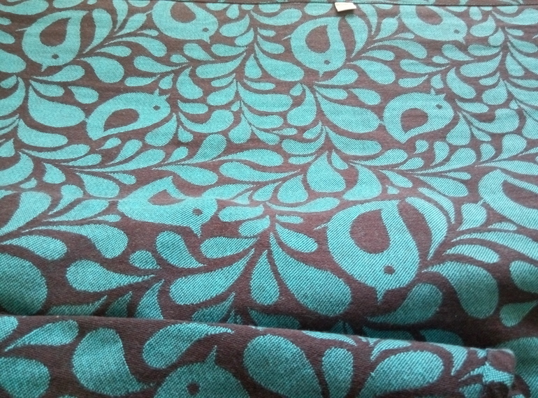 Паттерн Птички во всей своей красе! Так как это жакард, они еще и приятно пухлые и при намотке как-будто цепляются друг за друга. При условии, что у меня тяжелый слингожитель, это способность птиц мне только помогала