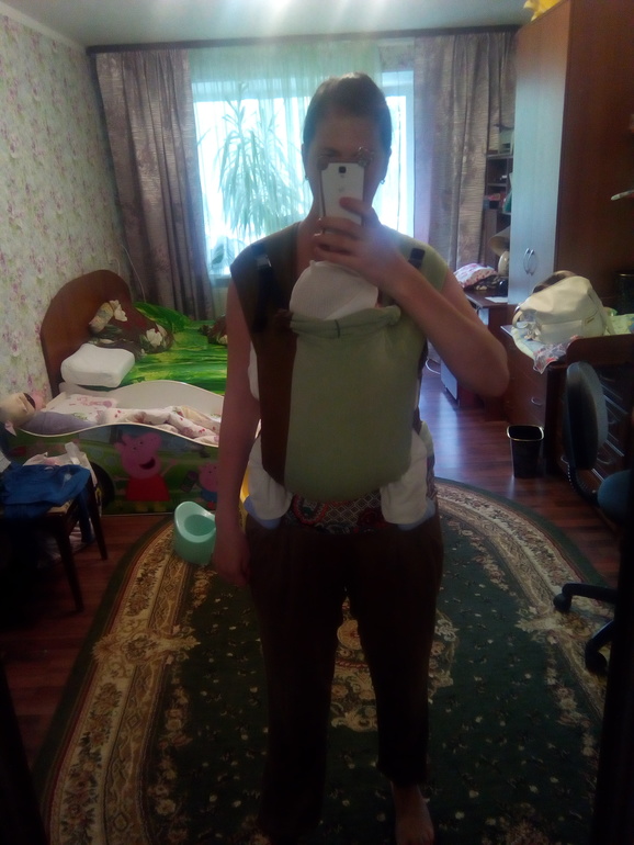 Учимся носитьПервый раз мотаю в май двухмесячного младенчика. Был опыт слингоношения с дочкой - с 5 месяцев до 2 лет, в эрго. Но май для меня в новинку:)
