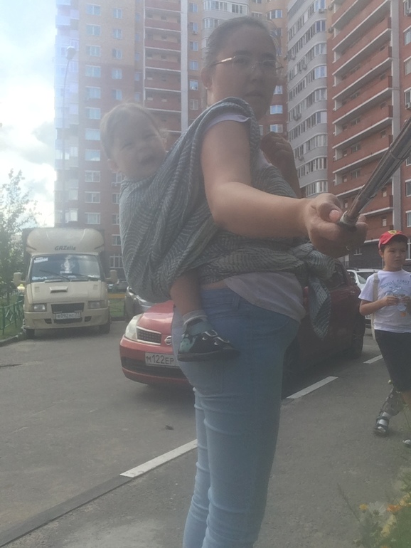 Вообщем визуально мне шарф по вкусу ! По ттх: новорождённого бы замотала однозначно не задумываясь ! Наши 9.5кг честно говоря в простом кресте нёс он со скрипом !