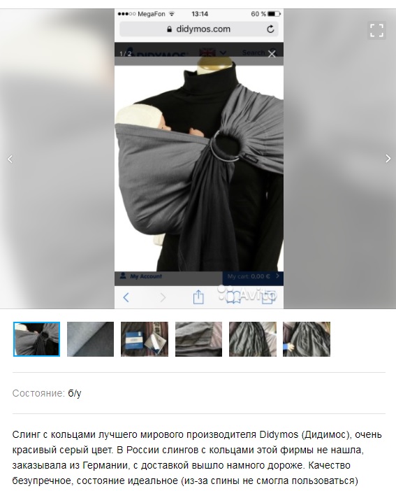 Прямо скажу - цена в 5000 р., которую за него просят, меня сильно смущает и останавливает. Не уверена, что готова столько тратить на первый в жизни слинг. Наверное, это единственное, что меня останавливает))