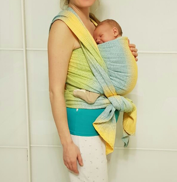 В общем, вы хорошо воспроизвели последовательность намотки из инструкции. Поначалу всегда на этом сосредоточиваешься - как вообще расположить полотнища шарфа и разместить там ребенка, а потом доходишь и до нюансов, который, порой, очень важны.