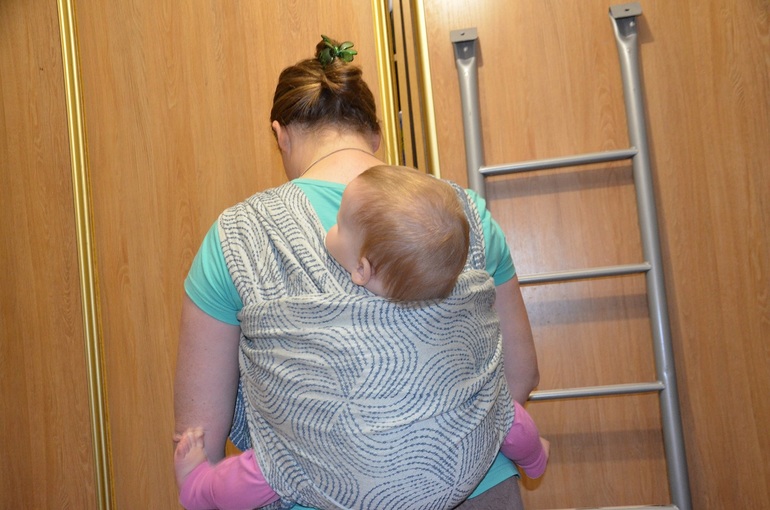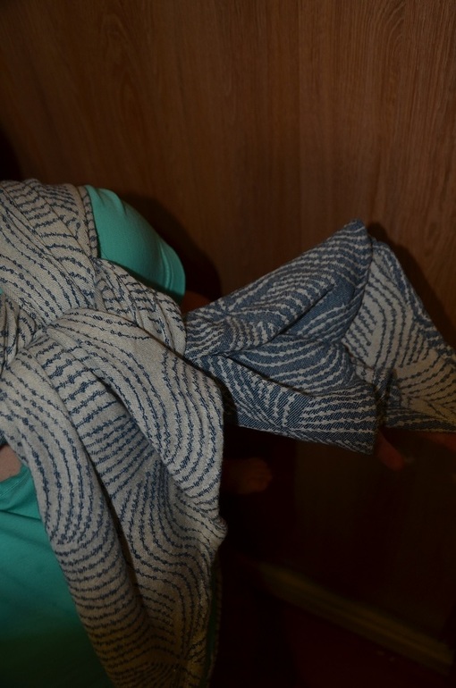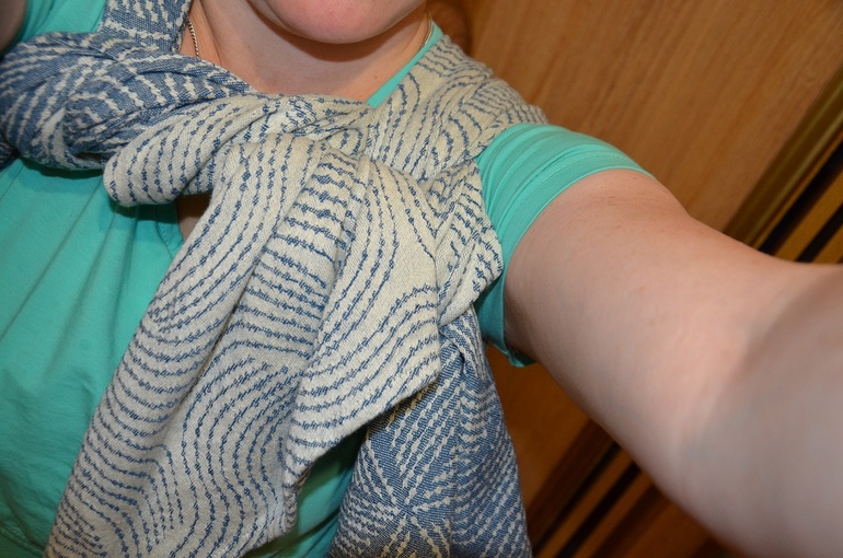 К чему я пишу тут фразы, с вроде как непозитивным оттенком? А вот к чему. Сейчас выбрать переноску, которая скорее всего была бы хороша во всех отношениях - весьма сложно. Как вы могли заметить, у меня мало фото в намотке, и всё на одном фоне. Увы, снимать в красивых разворотах некому и некогда. Я носила Энигму ситуативно, порой мотаясь в страшной спешке, нетщательно, левой пяткой, скорее, скорее... Ходила в нём дома и на улицу под куртку, совсем недолго и по два-три часа. И всякий раз я ловила себя на мысли, что я НЕ ЧУВСТВУЮ ШАРФ НА СЕБЕ.
