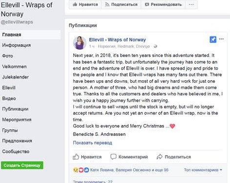 Полезная информацияЛегенда слингомира, норвежская фирма Ellevill объявила о прекращении деятельности. Об этом сообщила владелица фирмы Бенедикт на странице в Фейсбуке.