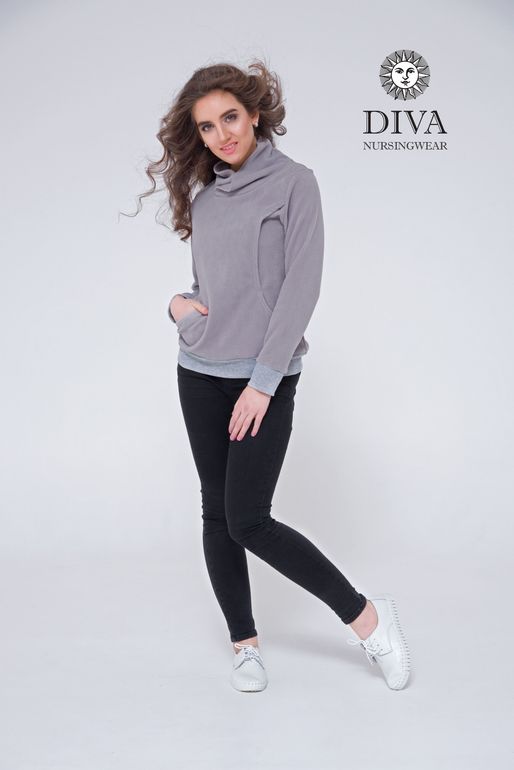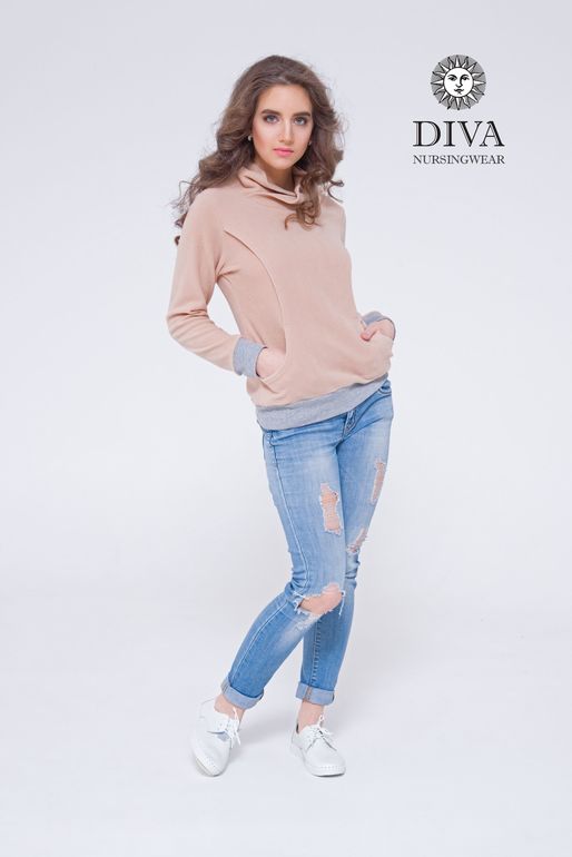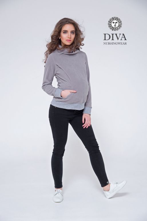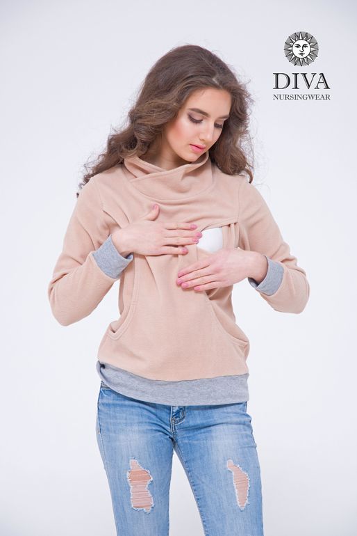 Благодаря свободному силуэту толстовку можно носить и во время беременности. А в боковых швах скрыт доступ к груди для кормления.