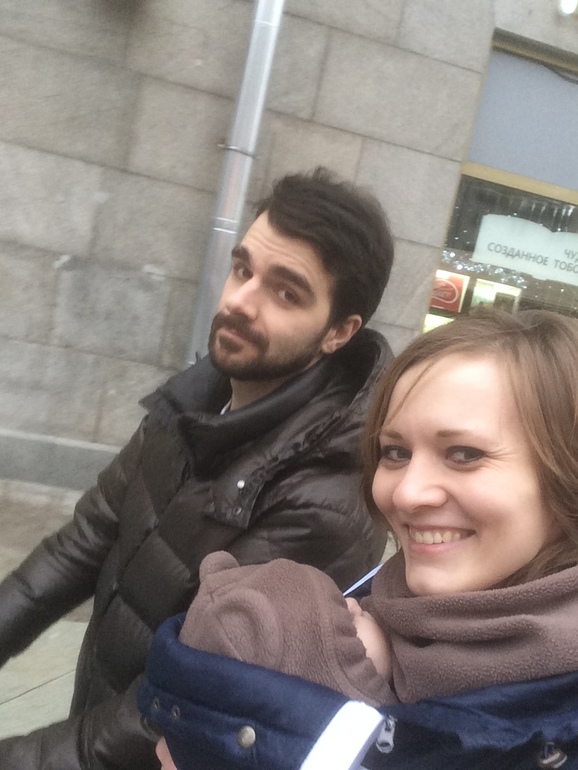 Ну, я в толстовке, шарф на шею, 3 слоя слинга - тепло. Роме мама моя связала манишку, по сути у неё получилось чуть ли не пончо, на ноги на колготки гетры и носки. И реально в морозы в ней гоняла. И ещё она была непродуваемая и непромокаемая, что очень актуально для Питера.