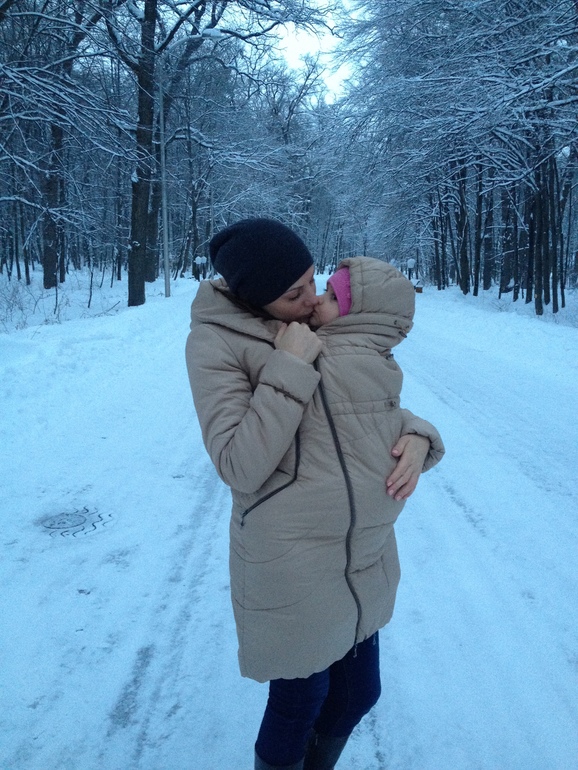 Может вам будет интересно Вебинар слинг зимой. Там обо всем найдёте и как малыша одеть и себя и обзор 2х курток зимней и демисезонной.