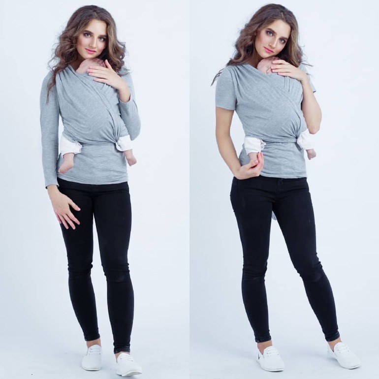 Хорошо смотрится слингомайка и без ребенка (актуально, когда малыша нужно вытаскивать на некоторое время и носить топ без него).