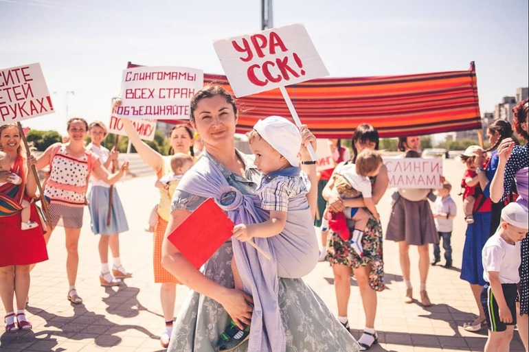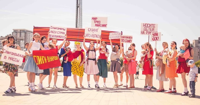 Ежегодный проект «Слингокалендарь» ( продолжается в Ростове-на-Дону. 12 месяцев - 12 ярких и необычных групповых фотосессий, а в итоге - издание календаря на наступающий год. На съемки очередного сета слингомамы города собрались накануне. Майской темой стала советская демонстрация - но, конечно, с нетрадиционным для СССР нюансом в виде малышей в переносках.