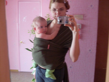 Да, слинг покупала через этот сайт с рук, Гармония. Сыночку в понедельник 4 месяца... Но начала я его запихивать туда еще с месяца (в "колыбельку"), а как стал головку держать, то начали вот этот способ, вроде как Крест под карманом. Беда только в том, что сына слинг сосет :))))) Ходим все в слюнях :))))