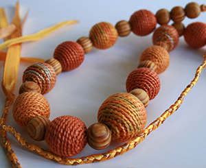 Вяжу хлопковой нитью, бусинки - бук/ясень/можжевельник(вкусно пахнееет!!))), круглые бусины и бочки.