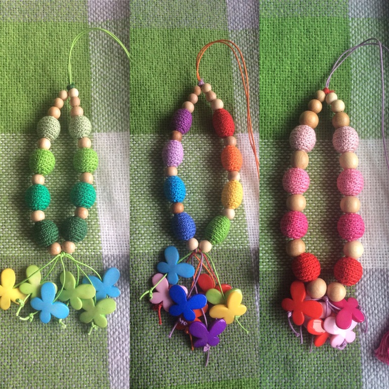 Можжевеловые бусины, вощёный шнур, хлопок, акриловые и силиконовые бусины и бабочки. Все можно грызть. Москва, почта. Бываю в центре. Все бусы 400, погремушки 300, деревянные игрушки-грызунки 600