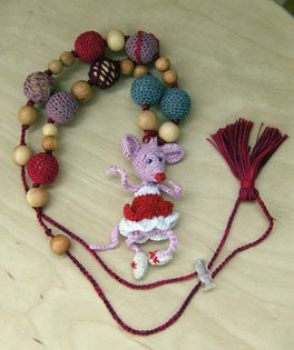 Состав нитки хб, можжевеловые бусины без лака, наполнение игрушки синтепух, игрушку можно снять для игры, она на пуговке, длина шнура регулируется, цена 600р.