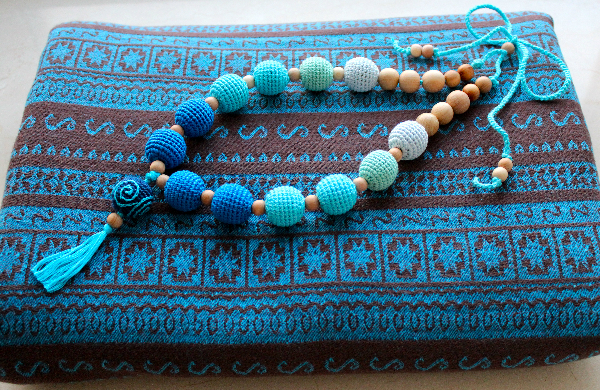В составе 100% хлопок, можжевеловые бусины без лака. Очень удобны для мамы и малыша. Под катом еще 2 фото с шарфом.