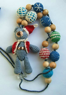 мишка дед мороз. состав: можжевеловые бусины, хб, валянные бусины, игрушка снимается. наполнитель синтепух цена 750 руб.
