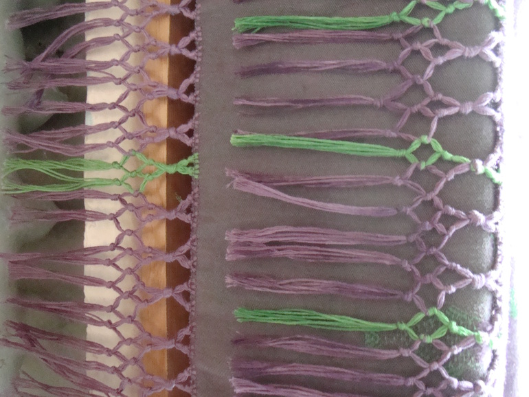 простите сразу не увидела что купили,предложу в москве палантин из рыб малави длина 2.5 прямые скосы плюс ручная бахрома из мулине в цвет шарфу. на фото веднеется изнанка.
