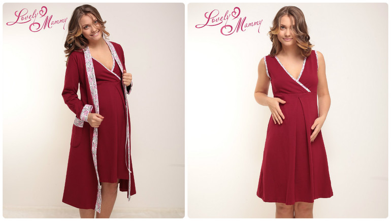 Комплект для беременных и кормящих (сорочка+халат) Моника с рукавом 1/2 и укороченным подолом - 1350руб