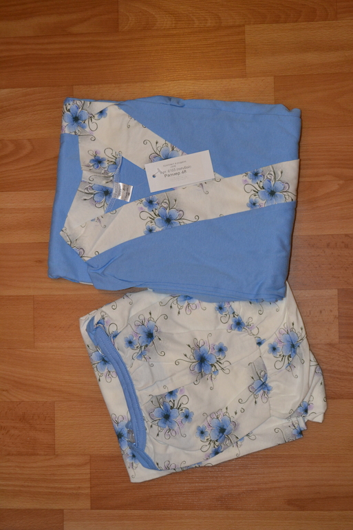 4) Комплект для беременных и кормящих (сорочка+халат) Моника с рукавом 1/2 и укороченным подолом - 1350руб голубой р-р 46