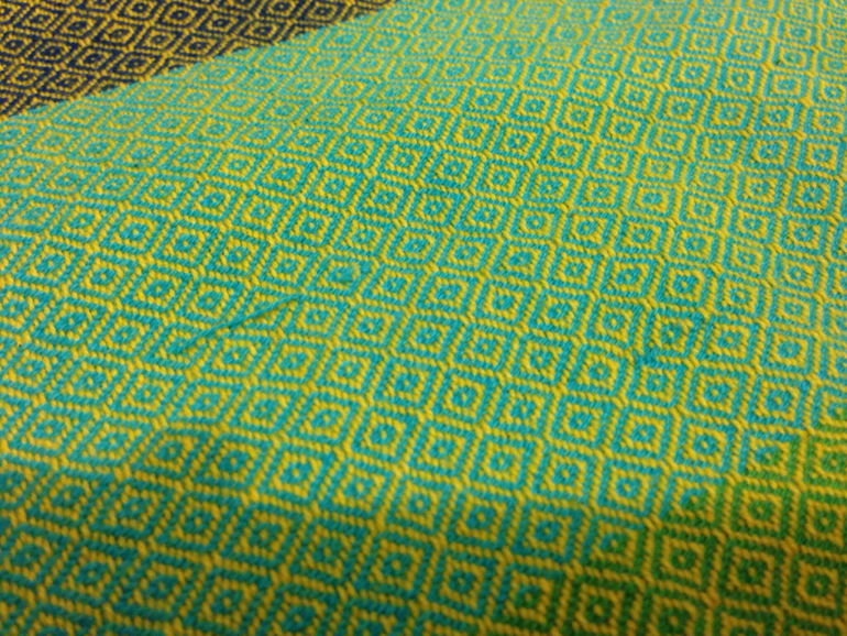 ОФФ, неравномерность окрашивания-можно показать, если нетрудно. Может вы имеете ввиду полосы, идущие перпендикулярно основным полосам, видные под определенным углом? Так это норма для гирасола. А вот с пропусками нитей — это да, у них много стало косяков таких((