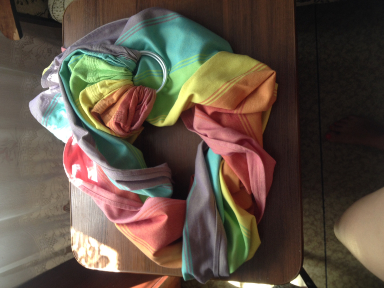 2. ССК Little Frog Агат. В идеальное состоянии, предыдущая хозяйка даже не стирала, носила пару раз. Нам достался картонкой, нами постиран, отпарен, плетен в косы. И ношен также раза 3. Яркий полосатый грузовоз. Отдам за 1100 + пересыл из региона.