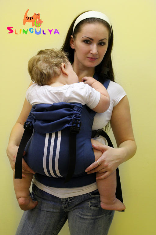 - он просто надевается, просто снимается; - у него нет длинных лямок, поэтому в случае необходимости можно расстегнуть слинг на улице и вынуть малыша; - он очень удобен, когда ребенок только учится ходить и часто просится на руки. - кроме того, большинство пап предпочитают именно этот вид слинга, т.к. он без всяких бантиков и завязок. Особенно если выбрать серьезную мужскую расцветку.